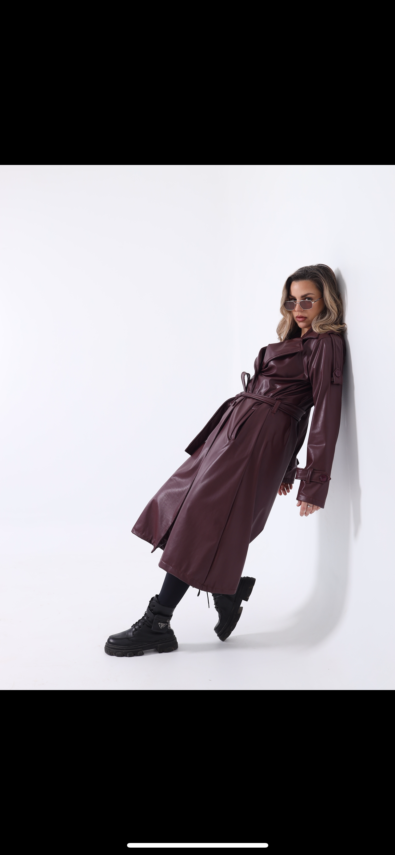 burgundy leather trench coat